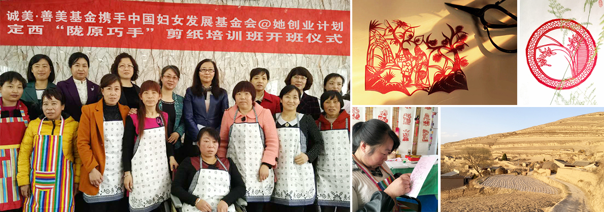 中国剪纸,已被联合国教科文组织列为人类非物质文化遗产代表作名录,堪称人类文化艺术瑰宝。面临传统剪纸艺术面临失传的危机,2016上海诚美•善美基金从甘肃陇中地区开始,与中国妇女发展基金会合作,支持定西艺梅民间文化艺术品有限公司的贫困女性手工艺人,不只为传承中国传统艺术文化,更为贫困地区女性能力再造,尽一份企业的社会责任与善举。